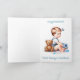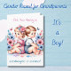 Gender reveal card. Let your parents know they are going to be a grandparent of a little boy! Grandson reveal card. Sweet watercolor illustration of a little baby boy with a teddy bear.