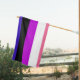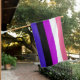 Outdoor house flag with the genderfluidity pride flag. Pink, white, magenta, black, and purple flag of the genderfluidity pride movement