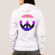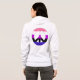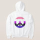 Hoodie hwith a peace symbol in the colors of the genderfluidity pride flag. Pink, white, magenta, black, and purple sign on a pink background