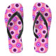 Flip flops with genderfluidity flag with rainbow stripes and a seamless modern geometric flower pattern in the colors of the pride flag; a pink, purple, magenta, white and black genderfluidity pride design