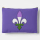 Accessory Poach with fleur-de-lis (fleur-de-lys or lily flower) symbol with rainbow stripes of purple, white and green from genderqueer flag; genderqueer pride design