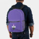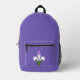 Backpack with fleur-de-lis (fleur-de-lys or lily flower) symbol with rainbow stripes of purple, white and green from genderqueer flag; genderqueer pride design