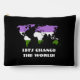 Customizable Accessory Poach with the map of the world in the color of the genderqueer pride flag, a design on a black background; the text 'Let's Change the World' is a template text and can be changed. This wall art is made to last!