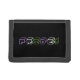 Design with text “Pride” on rainbow stripes in the colors of the genderqueer flag (purple, green and white) , queer pride lgbtq design on black background
