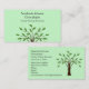 Genealogist Genealogy Tree Custom Business Card 2. The front is simple, classic and easy to read. Establishes your main information at a glance, and features your name, profession and tag line. At the bottom is a unique drawing of the top of a tree with a few green leaves on each branch suggesting the Family Tree. The green background makes it stand out. The back shows the full tree and has space for your information. Most now prefer email as an address, but there is space for a home or business address if needed. Buy as is, or customize to pick your background color.
