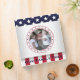 Patriotic American genealogy family tree photo album- Personalized circular photo frame of blue stars and red outline on the front for your favorite family photo over faux metallic silver background. Top has white stars pattern on blue. Bottom border is red and white stripes. Reads 'Our Family Tree' under photo in blue. Back is matching red, white and blue stars and stripes pattern. Spine is faux metallic silver with family name in red. Perfect for military family, soldiers, veterans, and proud Americans. Nice way to keep a military family historical record with family photos. This American flag photo design is available as many different gifts, as well as many other genealogy scrapbooks in our Zazzle.com/angela65* shop.