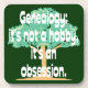 This funny genealogy design features a tree and the caption "Genealogy: It's not a hobby it's an obsession."