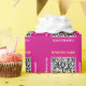 Personalize your business name in yellow and info, website and phone in white text and generate your QR Code on fuchsia background.