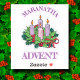 NOTE WELL: Saints_Aplenty does not recommend going any smaller in size than this. + An illustration of an Advent wreath made of evergreens and holly with all four candles lit between the arched word Maranatha ("Come, Lord") and the horizontal word Advent--both in large capital letters. The wreath's four candles represent and are lit on the four Sundays of Advent—the pink candle, the third; the three violet ones, the first, second, and fourth. The three violet candles symbolize hope, peace, and love; the pink candle, joy. + Image Credits: Black and white Advent wreath AI-generated by mimicoloringdesigns via Pixabay, modified and colorized by Saints_Aplenty; bow by Elionas also via Pixabay.