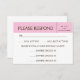 Generic RSVP Response Card - in pale pink with brown lettering. You can personalize this with your own information. If you need to move the text, or change the size, font or color of the text, click Customize It! If you need help, please use the Contact button under the design.
