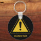 Triangle shaped yellow warning sign with exclamation mark. Custom background color. Custom text on both sides.