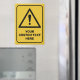 Triangle shaped yellow warning sign with exclamation mark. Custom background color. Custom text.