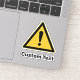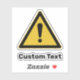 Triangle shaped yellow warning sign with exclamation mark. Custom text.