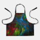 Great color and even though I ordered the kid size, it covers well enough to use during the holidays. I am not a big woman and prefer a shorter apron. I stand 5"6" and the length of the garment goes to mid-thigh. The tie straps fit well at my waist and even though there is no neck strap adjustment, the opening is plenty big enough. I am happy with the size and fit. I am sharing my apron with my 10 year old grandson, too! The color is vibrant and looks good, as shown on the website. The stitching looks strong and reinforced. Photographed is front side and back side of the apron, reinforced straps and coloring. My phone camera may not be the best at showing the details.