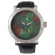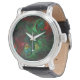 Genesis Green Abstract Art Vintage Leather Strap with Black Leather Strap Watch