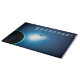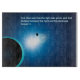 A stylized image in blue tones and white of the Earth and Moon backlit by the sun. An English translation of Genesis 1:4 reading "God saw that the light was good, and God divided the light from the darkness" also appears in glowing blue and white.