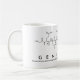 Genevieve spelled out in amino acids as G E N E V I E V E (Glycine Glutamic acid Asparagine Glutamic acid Valine Isoleucine Glutamic acid Valine Glutamic acid) on a mug for the scientist in you.
