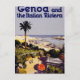 Poster shows a view of Genoa's harbor and the Mediterranean Sea.