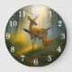 Gentle deer duo in sunlit forest large clock