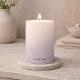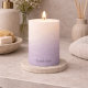 Soft diagonal lines in layered dusk tones wrap the surface, with “Gentle Fade” placed subtly near the base in a small serif. Designed to complement mantels, shelves, and tabletop displays, this pillar candle blends naturally with neutral palettes, stone textures, and relaxed everyday spaces.