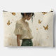 A young woman with dark, wavy hair stands in a dreamy, pastel-colored background. Her romantic outfit, featuring a cream-colored blouse and a floral headpiece, gives her a natural and delicate aura. Golden butterflies flutter around her, enhancing the atmosphere of lightness and harmony. The soft tones and intricate details create a poetic and serene mood.