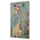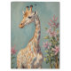 A majestic giraffe stands amidst lavender blossoms set against a calming pastel blue sky. Its long neck and body, adorned with unique patterns, reaches gracefully toward the sky above. Did you know that each giraffe has a unique pattern of spots, much like human fingerprints? This design captures the serene beauty of this gentle giant, blending its impressive stature with the delicate details of its surroundings.