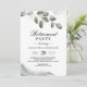 An Eucalyptus outdoor invitation is a beautifully designed invitation that is perfect for any outdoor event or gathering. The invitation typically features an elegant and rustic design, with lush green eucalyptus leaves as the main focal point. The leaves often serve as a natural border or frame for the invitation's text and graphics, creating a sophisticated and inviting look.