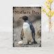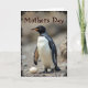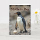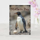 This card shows a tall, flightless bird standing calmly in the foreground, set against a softly blurred outdoor background that feels quiet and caring ❤️. Its body fills most of the lower area, with deep charcoal feathers along the back and wings contrasted by a bright ivory chest that looks smooth and well-kept. The head is glossy black with a warm amber-orange beak, and a small dark eye with a faint pink rim gives it an alert yet gentle look, as if watching over someone close. Near its feet, a single pale oval egg rests on a bed of mixed pebbles and fine gravel, and the bird’s stance reads like a protective, steady companion. The mood leans tender and devoted, like a quiet bond between caretaker and new life, shown through the bird’s poised posture and the way it seems to hover near the egg. Across the upper portion, the words “Mothers Day” appear in cocoa-brown lettering with a light outline, centered and easy to notice 🌼. Soft lighting brings out the feather textures and the rough ground, while a slightly worn dark border frames the scene. The bottom area shows scattered stones in tan and gray tones, with the pale egg nestled just in front of the bird’s feet.