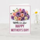 Designed with a lush bouquet of roses filling the upper half, this card features soft pastel blooms in tender pink, gentle lavender, and creamy peach tones that feel like a quiet gesture of affection ❤️. Tightly curled petals and a velvety look make the flowers seem fresh and inviting, as if someone just brought them in to say “I’m thinking of you.” Small touches of green leaves peek between the blossoms, adding contrast and a natural, comforting warmth. The flowers sit against a bright white background with light, airy shadows that give the arrangement depth without feeling heavy. Near the bottom, the words “Mother in Law” appear in a flowing cursive-style lettering, centered and easy to spot. Under that, “HAPPY MOTHER’S DAY!” is set in uppercase, thicker lettering in a deep magenta color that echoes the richer tones in the bouquet 🌼. A thin pink border frames the entire design, keeping the bouquet and text neatly contained.
