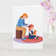 Designed with a tender, homey scene, the illustration shows an adult with warm orange hair wearing a calm blue top and tan trousers, seated on a brown stool as she leans in to comb a young girl’s bright red hair. The girl sits quietly with a small smile, her gaze turned upward with trusting affection that feels like close friendship ❤️. A red bow rests in her hair, adding a sweet accent that echoes the gentle care in the adult’s posture. The setting stays simple with a white background so the two figures and their closeness stand out. The child hugs a cheerful orange plush toy, and the warm reds and oranges balance nicely against the cooler blue clothing. Any front text is placed near the top in a soft, easy-to-read color, with a smaller line beneath it in a matching tone. Beneath them, a round rug shows concentric rings of red and orange with a soft lavender border 🌼.