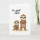 This card shows a simple scene on a white background, featuring two slow-moving tree-dwelling animals with rounded faces and gentle smiles. The larger figure stands close with arms loosely crossed, its warm brown-and-cream coloring and relaxed posture suggesting a caring, protective presence. Beside it, the smaller figure sits and looks up with wide, shiny eyes, creating a tender, affectionate connection that reads like family love ❤️. Both characters have darker patches around their eyes and small upturned mouths that make their expressions feel soft and friendly. Near the top, a short message of appreciation is placed above the pair in a light, flowing style, set in a dark gray tone that stands out without feeling harsh. With no extra scenery, the empty space keeps all attention on their closeness and the gentle mood 🌼. The two figures are centered, with the text aligned above them and plenty of white space surrounding their warm brown shapes.