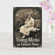 This card shows a young woman seated on a worn park bench, gently cradling an infant close to her chest, with a soft, affectionate calm between them ❤️. The artwork uses warm, faded brown tones like an old photograph, giving the scene a quiet, timeworn charm. The woman has neatly curled hair and a small, welcoming smile as she looks outward, while the baby rests peacefully in light-colored clothing, eyes open as if taking everything in. A softly blurred garden fills the background, where pale blossoms and leafy shapes suggest a calm afternoon outdoors 🌼. Darkened edges frame the image, drawing attention to the pair in the center and adding a cozy, intimate feel. A straw hat sits on the bench beside her, angled slightly as if just set down between moments. Along the bottom of the design, a short line of text appears in a light cream color, centered beneath the portrait. The border looks lightly worn, with gentle speckling and shadowing around the corners.