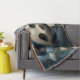 A quality printed throw has its advantages. This is a much finer weave throw than its loopier cousins, and though lighter, it is worth the investment for custom room accessorizing. The back is much prettier than the typical brown, and the fringe on the long sides very vivid, the selvage nicely done. Before photographing, I washed the throw in cold water, delicate, with a thicker woven throw the same size. On tumble dry low, this throw was dry in half the time as the other. This is a very practical quality if you use throws for furniture covers or to wrap up in frequently. The sleekness of the fabric makes it a great layer for accenting or protecting without the feeling of sitting on too much stuff. Perfect for napping or when you feel a light chill coming on. The color printing is beautiful and on this fabric, matched the design and color of my Photoshop image. This is an advantage for blending room fabrics and colors. The fringe on the short sides prints the colors from the design image and therefore varies from the side fringe. I streaked a white fractal line through the plaid pattern to give the illusion of weaving. This printed as crisp as an illusory thread, and put some white in the short side fringe, showing another advantage of print vs loomed- for artistic purposes, line lines, detail, and color integrity can be planned and preserved. My loomed throws have color limitations and more of a needlepoint texture. Print throws reproduce an exact image. The throw felt a little stiff straight out of the package, but this went away in the first delicate wash. Of course I searched the wash water for ink or bleeding and there was none.