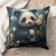Gentle Panda Bear Among Jungle Roses Throw Pillow