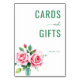 This wedding tabletop sign features a clean, minimalist design with a harmonious layout. The color palette includes soft pastel pinks and lush greens, creating an elegant and inviting atmosphere. A realistic illustration of pink roses adds a delicate touch, while the bold serif typography highlights "CARDS and GIFTS" in deep green, conveying appreciation with a simple "Thank You." Perfect for expressing gratitude at your special event, this sign combines natural beauty with structured elegance to enhance any wedding setting.