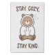 Wrap yourself in comfort and compassion with this incredibly sweet "Stay Cozy, Stay Kind" graphic. Featuring an adorable, content bear all snuggled up in a hoodie, this design serves as a gentle reminder for both self-care and kindness to others. It’s the perfect, heartwarming message to promote a peaceful and positive atmosphere.