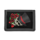Gentleman skull is dressed in his finest top hat with red bow tie and red roses.