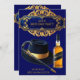 Gentlemen Hat Cane Whiskey Gold Navy Birthday Invitation