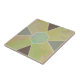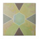 A ceramic tile featuring an earthy palette of soft greens, yellows, and beige with a marbled texture. The design incorporates geometric shapes, including a central hexagon and surrounding triangles outlined in white. This modern yet natural composition brings a serene and balanced aesthetic to any space.
