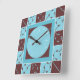 Quirky, funky retro fun clock featuring geometric grid pattern plaid in clean modern lines of alternating squares of cool chocolate brown and whimsical sky blue, accented with coordinating circles.. A trendy, chic and stylish addition to make your home, dorm or office bright and cheery.