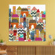 geometric pattern filled houses, buildings and windmills