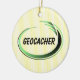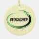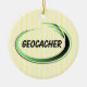 Geocacher text with an green oval splash is a unique geocaching gift design for geocaching friends and family at Christmas.