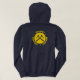 Geologist - in yellow with crossed rock hammers symbol. Back print on hooded sweatshirts in black, charcoal, navy or white.