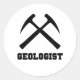 Crossed rock hammer design with Geologist in collegiate style lettering.