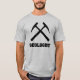 Geologist - tshirt with black collegiate style lettering and crossed rock hammers graphic.