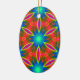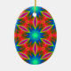 An attractive geometric pattern/design in shades of red, blue, green, yellow and purple with a kind of flower like motif.