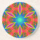 An attractive geometric pattern/design in shades of red, blue, green, yellow and purple with a kind of flower like motif.
