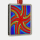 An attractive geometric pattern or design predominately in shades of red and blue, but also with yellow, cyan, purple and green.