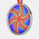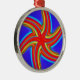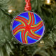 An attractive geometric pattern or design predominately in shades of red and blue, but also with yellow, cyan, purple and green.