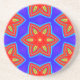 An attractive geometric pattern predominately in shades of red and blue, but also with yellow, cyan, purple and green.